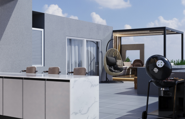 In this project, we focused on creating a design that combines functionality with subtle innovation. The majlis and kitchen were developed to maximize the rooftop space while maintaining clean aesthetics and thoughtful details that enhance comfort and usability.
